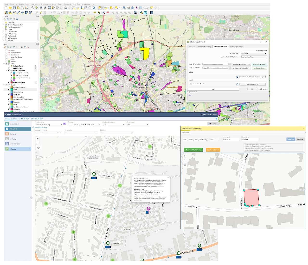 Insgesamt verbessert das QGIS-Plugin die Geodatenverwaltung erheblich und erweitert die Möglichkeiten, die KVSaaS bietet, um georeferenzierte Prozesse effizient zu steuern.