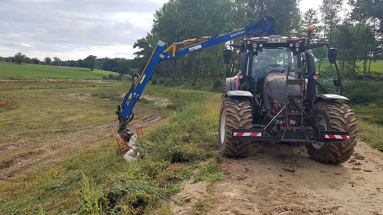 Entsprechend dem Abtsgmünder Aktionsprogramm Artenvielfalt hat die Gemeinde Abtsgmünd einen Weg gesucht, das Mulchen zu vermeiden und dabei trotzdem die Arbeiten rational und zügig zu erledigen. Deshalb entschied sie sich für eine spezielle Mähkorbkonstruktion, die entsprechend den Anforderungen der Gemeinde Abtsgmünd abgeändert wurde und nun vielseitig einsetzbar ist wie z.B. auch für diverse Schilfgewächse am und unter Wasser. Konstruiert und umgebaut wurde die Spezialmaschine von Martin Ernsperger von MEM Forsttechnik aus Neuler-Leinenfirst, der damit nun die entsprechenden Flächen in der Gemeinde Abtsgmünd mäht.