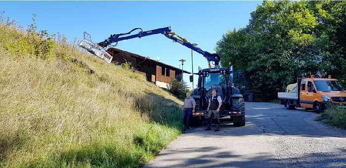 Die Gemeinde Abtsgmünd mäht ab sofort auf ausgesuchten Straßenrändern und Böschungen mit einer eigens dafür angefertigten Mähkorbkonstruktion.