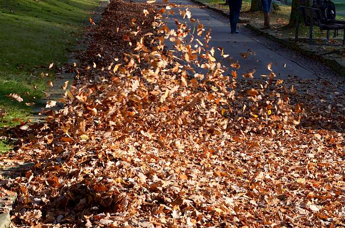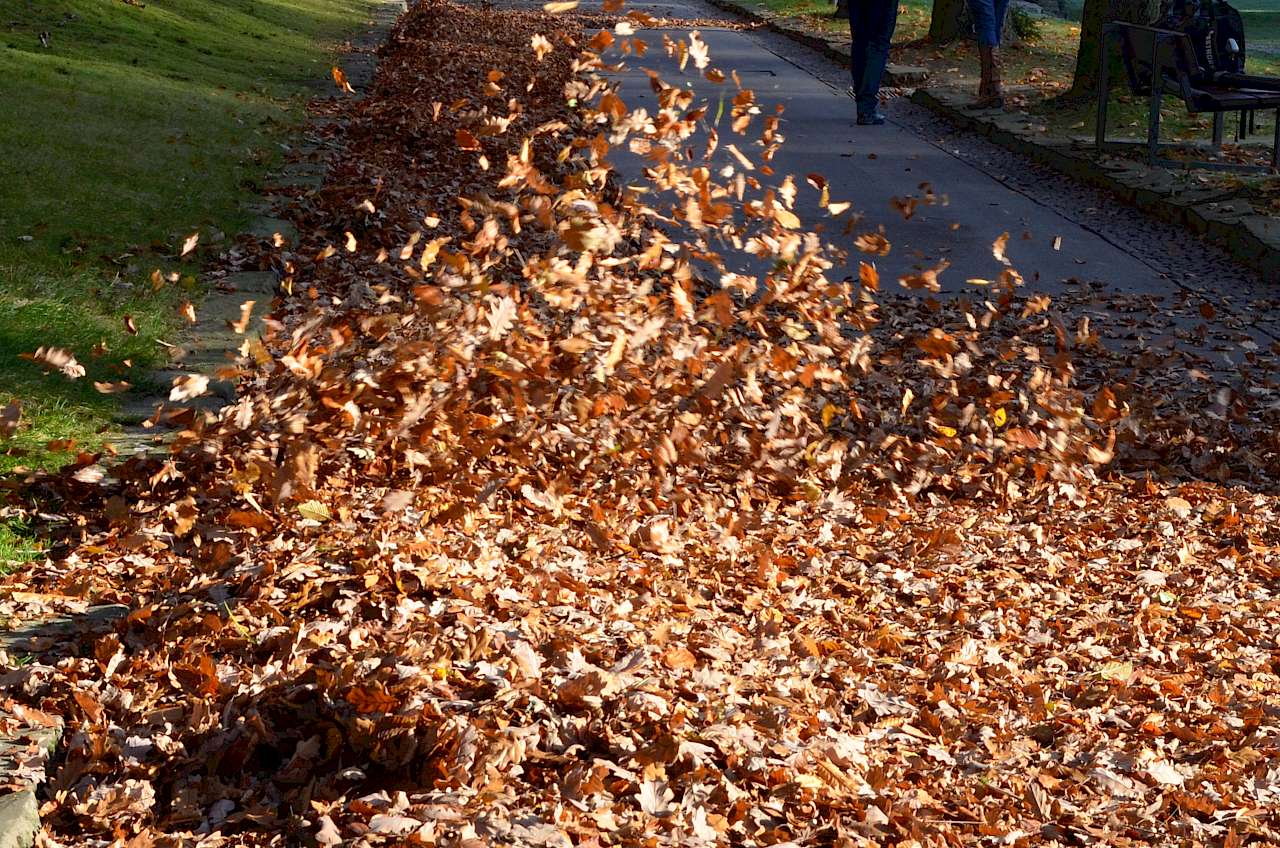 Das Baubetriebshof-Team lässt das Laub auf bestimmten Flächen auch liegen. „Das machen wir auf einigen gezielt ausgesuchten Staudenbeeten zum Winterschutz sowie auf extensiven kommunalen Flächen mit geringem Pflegestandard, beispielweise bei einmaligem Mulchen im Jahr“, fasst er zusammen. Um geringe Laubmengen auf der Fläche zu mulchen, wollen sie in diesem Jahr eine Maschine eines niederländischen Anbieters ausprobieren, einen sogenannten Blattreduzierer. „Von praktischen Erfahrungen kann ich noch nicht berichten“, sagt Jörg Iwwerks, „aber die neue Maschine soll die Laubaufnahme und den Transport erheblich reduzieren.“