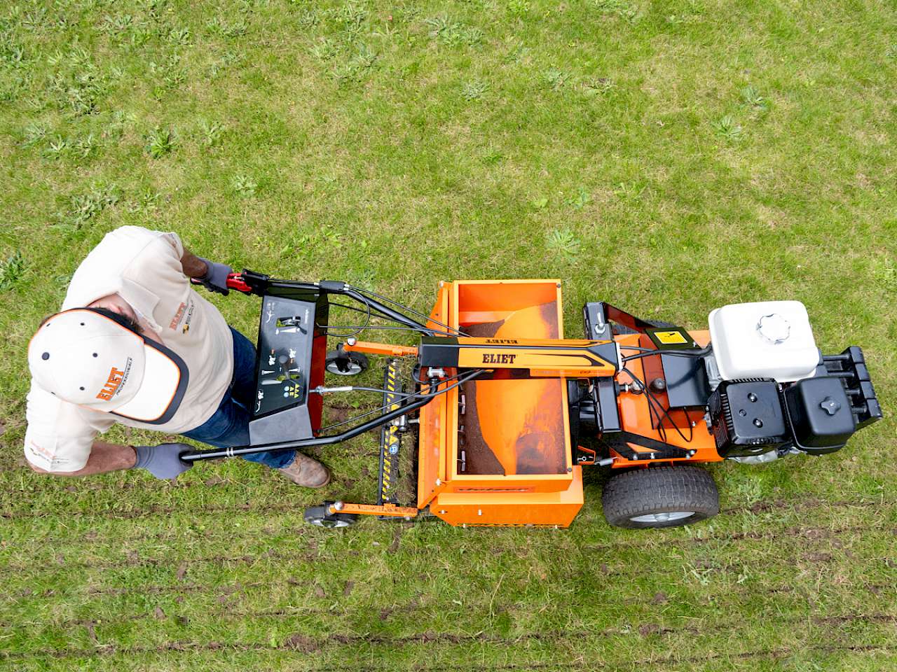 Der Jetzer von Eliet ist eine kompakte Maschine, mit der auf einer bestehenden Rasenfläche Hilfsstoffe oder Dünger in einer Tiefe bis zu 10 cm eingebracht werden. So können die Drainagekapazität sowie die Aufnahme- und Retentionsfähigkeit sowie die Durchlüftung des Bodens erhöht bzw. Wasserspeichermedien bereit gestellt werden. Der Jetzer wurde für den Einsatz in privaten Gärten durch Dienstleister konzipiert.