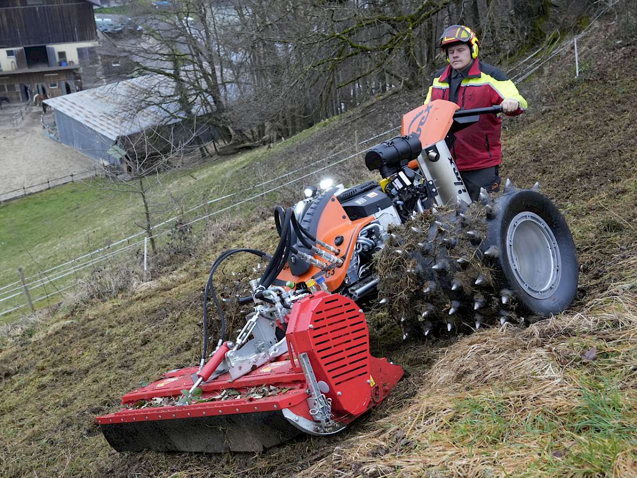 Die Traktionswinde ermöglicht das Arbeiten mit der ferngesteuerten Geräteträger Moritz an bisher unzugänglichen Stellen. Die Steuerung erfolgt automatisch über den Fahrhebel der Raupe, die andere Hand bedient das Anbaugerät. Der Arm der Winde schwenkt um 360 °. Somit ist einfaches Manövrieren am Hang – längs oder quer – möglich. Die Seilkapazität beträgt 1.100 m.