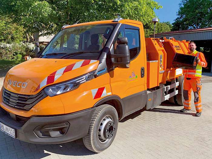 Der städtische Bauhof Hohen Neuendorf verfügt nun über drei neue, vollelektrische Nutzfahrzeuge von Iveco, davon zwei E-Pritschen, die für Grünschnitt, Grünpflege, und alles Weitere, was auf dem Bauhof anfällt, eingesetzt werden. Der dritte Iveco ist mit einer Müllpresse von Zoeller ausgestattet. Diese soll vor allem auch Personalkapazitäten für andere und zum Teil nicht geschaffte Arbeiten freisetzen.