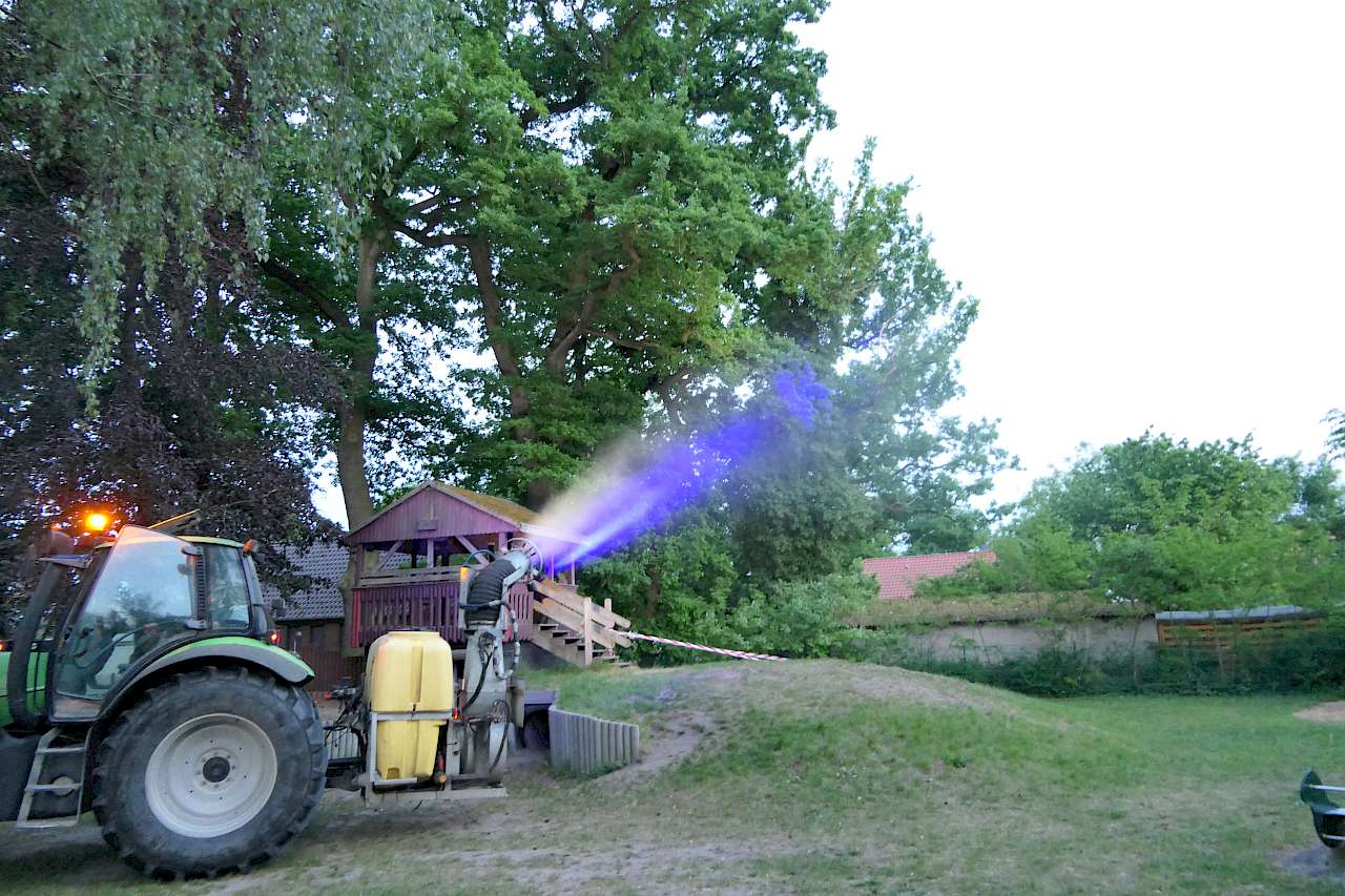 Mit dem Netz-Haftmittel Break Through HP 133 haben wir erste guten Erfahrung im Einsatz gegen den Eichenprozessionsspinner gemacht, das hat ebenfalls eine Öko-Zulassung. Ein wichtiger Punkt für die Anwendung ist, dass wir bei Nematoden-Anwendungen keinen Mindestabstand zu Gewässern einhalten müssen. Das ist bei chemischen Präparaten durchaus der Fall.