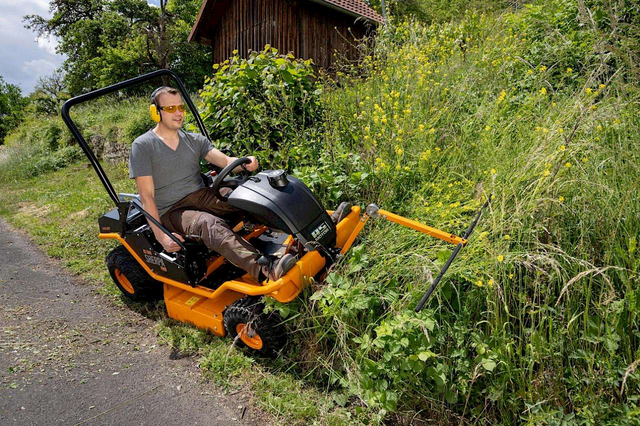 Die Versuche haben auch gezeigt, dass die Positionierung der Scheuch-Vorrichtung für deren Wirksamkeit entscheidend ist. Nur wenn diese den Bestand in ausreichender Entfernung vor dem Mähwerk stimuliert, kann ein wirksamer Fluchtimpuls ausgelöst werden. Vorhandene Konstruktionselemente wie der vordere Holm oder das serienmäßige Schutztuch eines Mähers sind in dieser Hinsicht deutlich weniger effektiv. Der Abstand dieser Bauteile zum Mähwerk ist zu gering, um eine rechtzeitige Reaktion der Fluginsekten zu ermöglichen. Die AS-Motor Scheuch-Vorrichtung lässt sich einfach montieren, bei Bedarf einklappen und beeinträchtigt weder bei Arbeiten am Hang noch in unebenem Gelände. Die an zahlreichen Geräten einsetzbare Vorrichtung ist damit ergänzend zu einem sinnvollen Pflegemanagement eine einfache technische Lösung, um faunaschonender zu mähen.