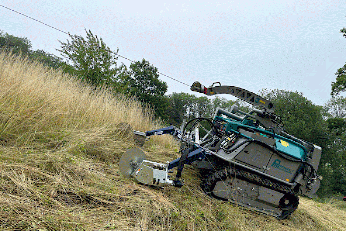 Der ferngesteuerte Geräteträger kann flexibel mit unterschiedlichsten Anbaugeräten eingesetzt werden. Alle Funktionen der Anbaugeräte werden bequem über die serienmäßige Funkfernsteuerung gesteuert. Ein besonderes Highlight ist die Traktionsseilwinde. Mit einer maximalen Seillänge von 1.000 Metern ermöglicht sie sicheres Arbeiten in extremem Gelände. Die Winde gewährleistet, dass der Moritz selbst auf schwierigstem Terrain jederzeit optimalen Grip hat und effizient arbeiten kann. Die Winde wird synchron mit dem Fahrantrieb gesteuert.