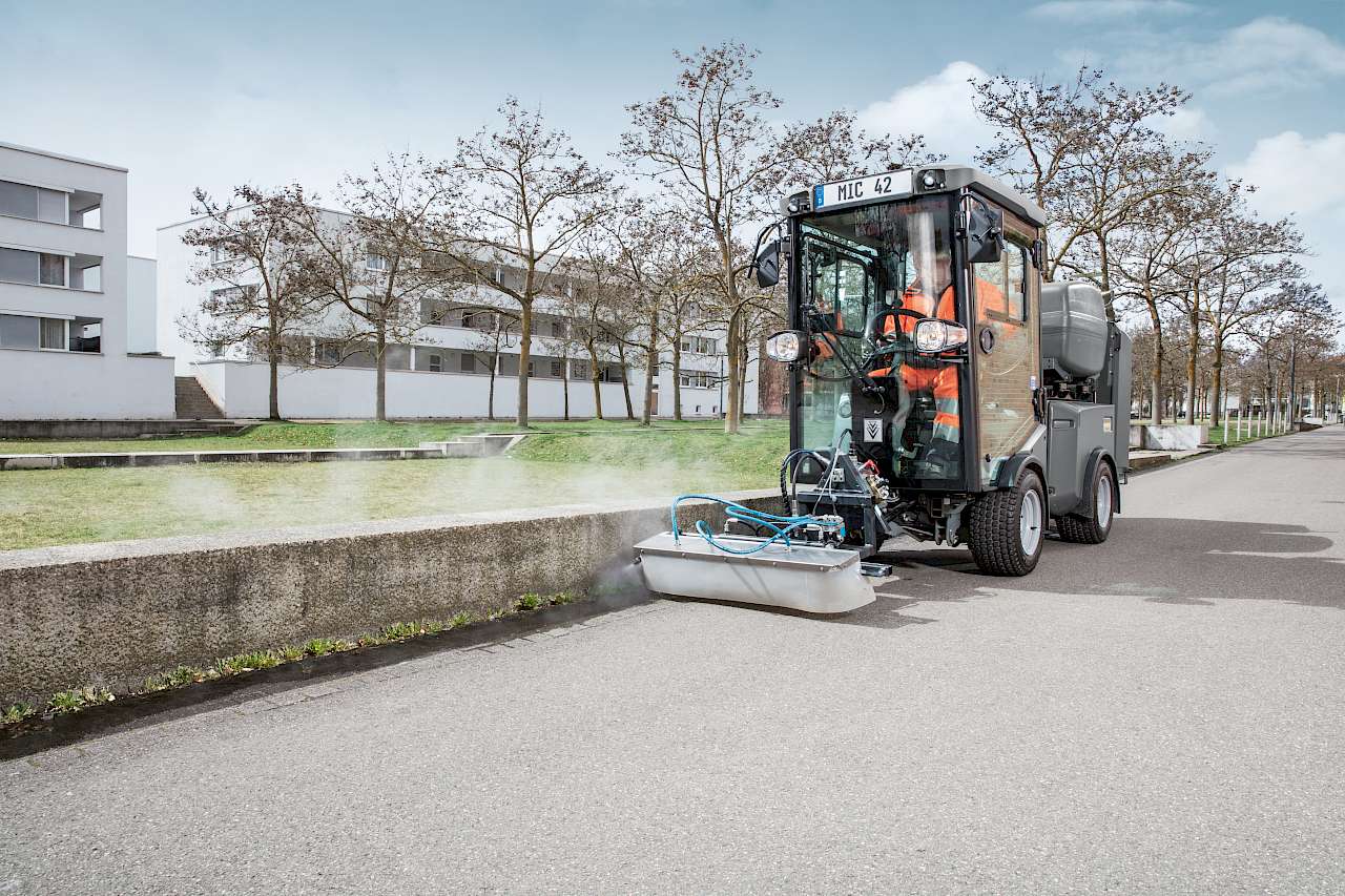 Mit dem WRS200 präsentiert Kärcher ein neues Anbaugerät für Kommunalmaschinen, das Hochdruckanwendungen mit kaltem und heißem Wasser ermöglichen soll.