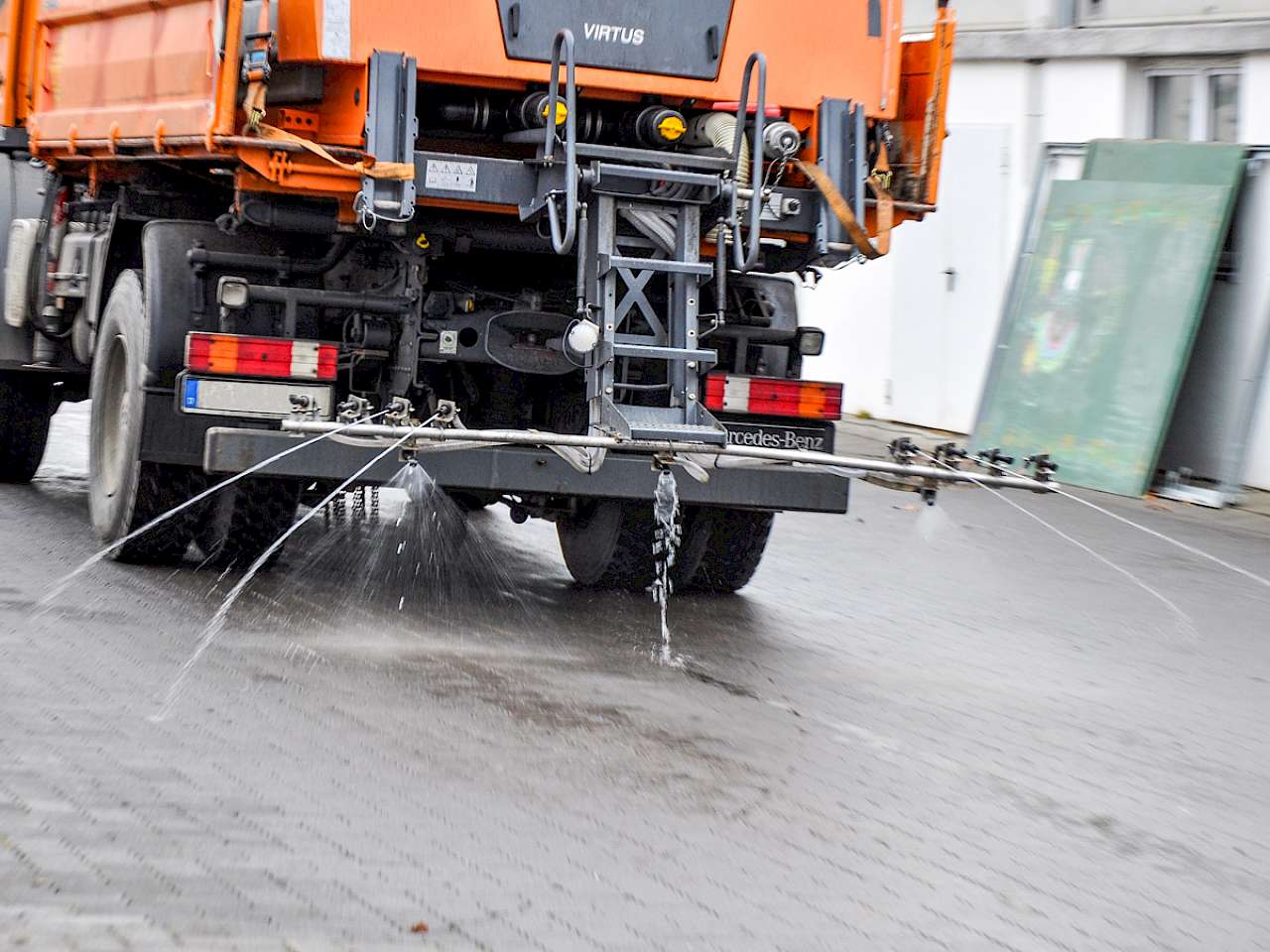 Das Gurkenwasser hat in der Fertigung eine Salz-Konzentration zwischen 8 und 10 %. „Mit dieser Sole könnten wir nicht arbeiten, da wir eine 21-prozentige Sole brauchen“, erklärt Klaus Däuschinger. Nach der Nutzung des Salzwassers für die Gurkenproduktion erhöht der Gurkenproduzent daher die Konzentration des Gurkenwassers auf 21 %, indem er weiteres Salz dazu mischt. Zum Ausbringen des Gurkenwassers nutzt die Straßenmeisterei die vorhandenen Feuchtsalzstreu- und Kombistreuautomaten. Die Kugelmann Kombistreuautomaten mit 5 m³ Salz und 6.600 l Soletank werden mit den beiden eigene 3-Achs-LKW MAN 400 und 460 gefahren.