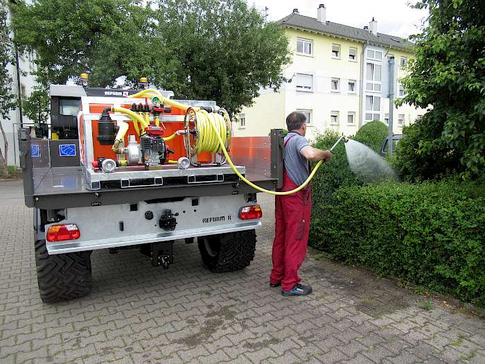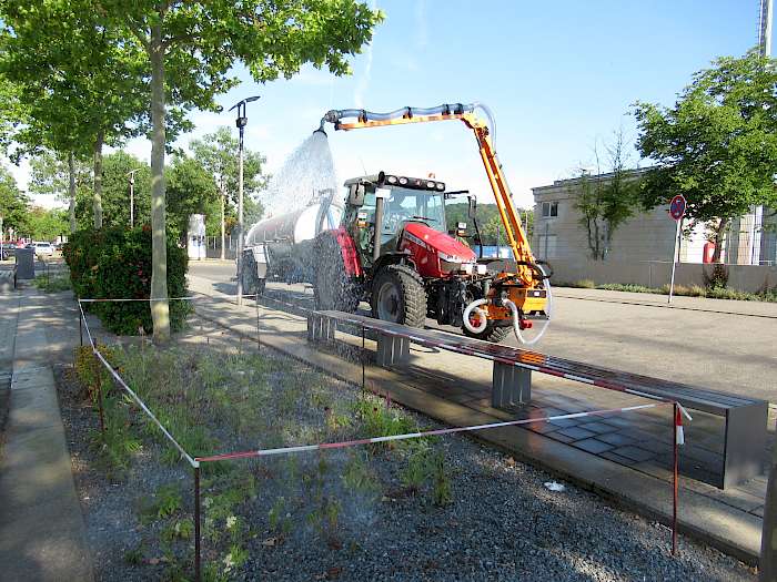 Integraler Bestandteil eines effizient arbeitenden Bewässerungsfahrzeuges ist das Wassertanksystem. Dessen Größe hängt von den Möglichkeiten des Trägerfahrzeuges ab. Möglich sind Aufbausysteme für das Trägerfahrzeug selbst, aber auch anhängergeführte Wasserbehälter. Auch im Vorfeld einer Investition in Wasserbehälter und Zubehör muss einiges beachtet werden. Eine zentrale Stellgröße ist das Volumen des Wassertanks. Der Wasserbedarf eines ausgewachsenen Stadtbaumes beträgt monatlich rund 200 l. Mit einem 1000 l fassenden Behälter ließen sich bei einem 14tägigen Gießrythmus gerade mal 10 Bäume mit Wasser versorgen, bevor nachgetankt werden muss. Bei einer kleinen Gemeinde mit vergleichsweisen kurzen Wegen ist das vertretbar, für Städte mit deutlich weiteren Anfahrten ist das keine Option. Hier setzen die Gartenbauämter auf deutlich größere Fahrzeuge, die bis zu 20.000 l Wasser mitführen können.