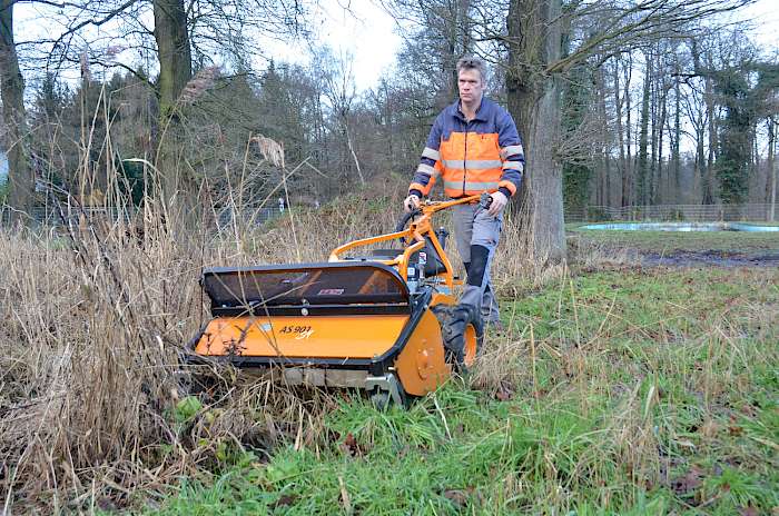 Zu den jüngsten Neuerwerbungen gehörte der Mulchmäher AS 901 von AS-Motor. 2014 konnten die Hasbergener Bauhofkollegen diesen Schlegelmulcher erstmals einsetzen − und waren vom Arbeitsergebnis überrascht. „Entsorgung von Grünschnitt ist ein Thema, auch bei uns. Deshalb sehen wir im Mulchen von Grasflächen eine gute Lösung. Aber ich hätte nicht gedacht, dass die Maschine selbst höheren Grasaufwuchs so effektiv zerkleinert. Da bleibt keine Grasmatte auf der gemähten Fläche zurück. Und die Optik der Flächen ist nun mal für die Bürger ein wichtiges Kriterium“, so die Erfahrung des Bauhofleiters.