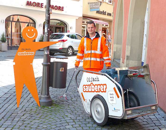 Ein Ansatzpunkt, dieser Müllmengen besser Herr zu werden, ist nach Einschätzung Siegfried Veits das Aufstellen und natürlich regelmäßige Leeren zusätzlicher Behälter. Hier eröffnet sich allerdings durchaus ein Widerstreit unterschiedlicher Wünsche, wie er weiter erläutert: „Allein mit den Eimern die Menschen zu animieren, den Müll nicht auf den Boden zu werfen, reicht natürlich nicht aus. Diese Angebote werden schon gut angenommen – und je offensichtlicher die Behälter zu sehen sind, desto größer ist die Wahrscheinlichkeit. Aus stadtplanerischer Sicht wäre es allerdings wünschenswert, die Mülleimer möglichst unauffällig zu platzieren. Dieses Dilemma ist nicht immer ganz einfach zu lösen.“ Eine denkbare Option wären unterirdische Tiefbehälter mit oberirdischem Einwurf, der jeweils unauffälliger zu platzieren wäre. Eine Leerung würde in größeren Intervallen dann mit Großfahrzeugen und Saugrüssel erfolgen. Diese Idee findet der Betriebsleiter zwar spannend, aber leider sei dies aus verschiedenen baulichen Gründen in der historischen Innenstadt nicht umsetzbar. Somit bleibe nur, wie bisher die bestehenden Behälter manuell zu entleeren und das Material mit Pritschen-Pkw oder -transportern zum Sammelplatz zu bringen. [...]
