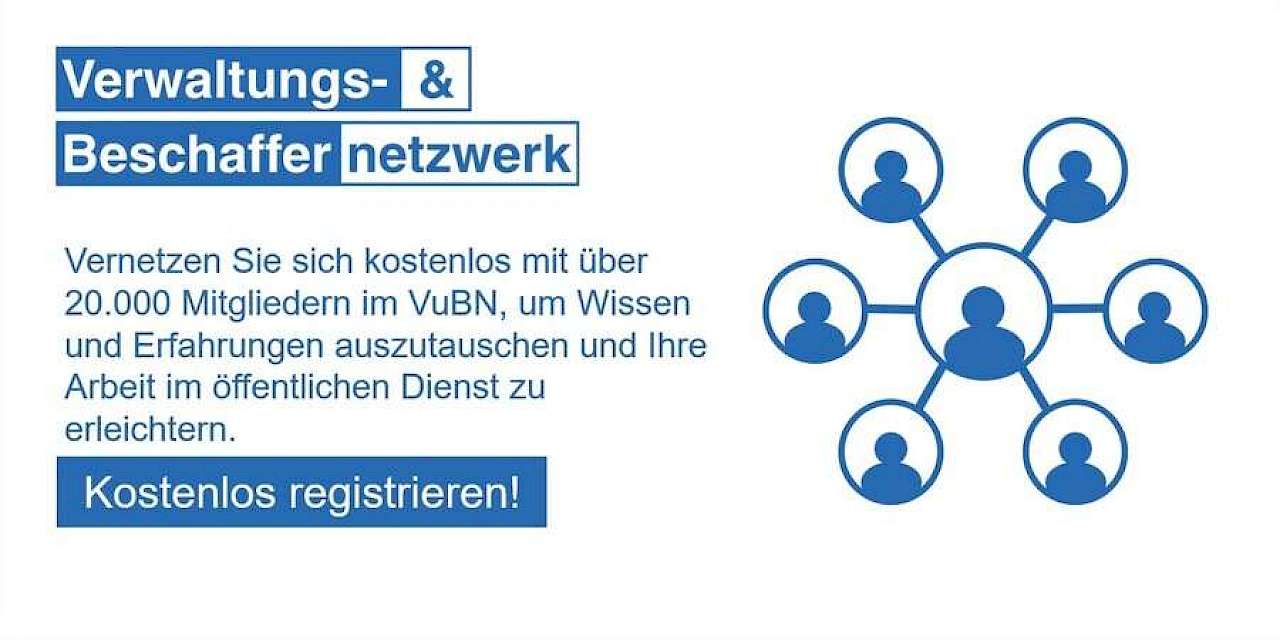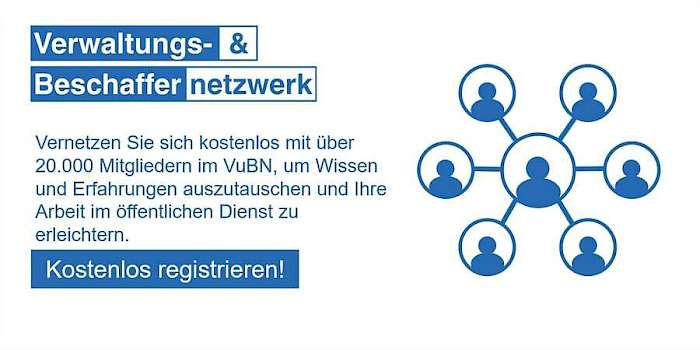 Profitieren Sie so vom Wissen und den Erfahrungen Ihrer Kollegen/innen und/oder geben Sie eigene Erfahrungen weiter. Die Diskussion im Verwaltungs- und Beschaffernetzwerk (VuBN) findet in einem "geschützten Raum" statt, der nur für Mitarbeitende öffentlicher Verwaltungen zugänglich ist. In verschiedenen Gruppen können Sie zu speziellen Themenbereichen, wie z.B. Bauhöfe und Betriebsdienste, Fuhrparkmanagement, Grünanalagen und Baumpflege, Interkommunale Zusammenarbeit, Beschaffung und vielem mehr austauschen.