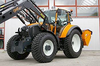 Die kommunale 50 km/h-Ausführung des Geotrac 124 verfügt unter anderem über eine beheizbare Frontlader-Freisichtscheibe sowie über eine 4-fach-Heckzapfwelle mit Anlaufsteuerung. Auch eine eingebaute Signalsteckdose für Splittstreuer gehört zum Geotrac-Kommunalpaket. ,Durch den integrierten Bordcomputer können Arbeits- und Einsatzdaten elektronisch erfasst werden - ein Pluspunkt im überbetrieblichen Einsatz." Der Traktor ist mit der neuen, rumpfgeführten Lindner-Fronthydraulik ausgestattet. Die Hinterachsabstützung ermöglicht laut Linder einen optimalen Schneepflugeinsatz. Aufgrund des speziellen Lichtkonzepts soll der Traktor rund um die Uhr eingesetzt werden können.