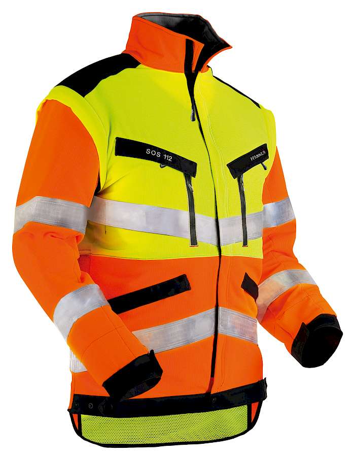 Die Pfanner KlimaAir Hi-Vis-Jacke entspricht EN 20472. Die Grundfarben sind Signal-Orange und Signal-Gelb. Sie ist für den ganzjährigen Gebrauch ausgelegt. Das KlimaAir-Distanzgewebe ist ein patentiertes Hinterlüftungssystem und soll für Kühlung im Sommer und Wärmeisolierung im Winter sorgen. Atmungsaktive Stretch-Stoffe bieten höchsten Tragekomfort bei körperlicher Anstrengung. Sie seien schmutz-und wasserabweisend, sowie reißfest und elastisch. Es gibt ein zusätzliches Entlüftungs-System im Rücken-Bereich. Außerdem Fronttaschen mit Patte, Brusttaschen mit Reißverschluss, einen durchgehenden Frontreißverschluss mit Windschutzleiste und einen verlängerten Rücken. Die Bundweite kann mit Druckknöpfen verstellt werden, die Ärmelbündchen können mit Klettverschluss justiert werden. Die abnehmbaren Ärmel können einzeln nachbestellt werden – auch in einer längeren Ausführung.