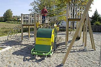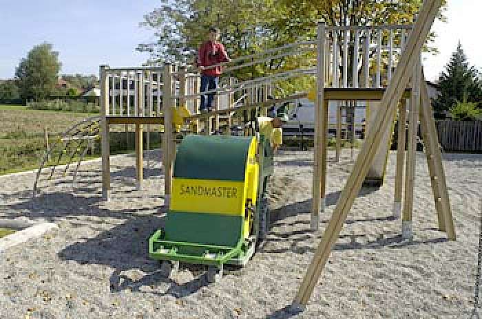 Die europäische Norm DIN EN 1176/1177 sieht vor, dass Spielplatzgeräte - und dazu gehört auch ausdrücklich der Boden - gewartet und einer regelmäßigen Inspektion unterzogen werden müssen.Im Vergleich zum klassischen und teuren Sandaustausch, hat die Firma Sandmaster GmbH eine kostengünstige und zugleich umweltschonende Alternative anzubieten - die Sandmaster-Sandreinigung. Bei dem Original-Sandmaster-Verfahren (TÜV-geprüft) wird mit Hilfe eines Förderbandes der aufgenommene Sand senkrecht gegen ein Steilsieb geworfen. Verunreinigungen jeglicher Art ab einer Partikelgröße von 5-8 mm, wie z.B. Tierexkremente, Glasscherben oder auch Laub, werden nahezu vollständig ausgesondert. Bei einer ausreichenden Schütttiefe kann die Sandmastermaschine im Dauerbetrieb Sandschichten bis zu einer Tiefe von 30-35 cm erreichen.