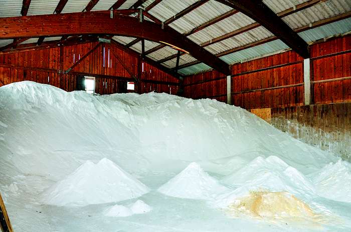 Streustoffhallen sollten eine lichte Höhe von 12 m im Firstbereich haben, um Streustoffe einfach in der Halle abkippen zu können. Die Durchfahrtshöhe des Tores sollte 9 m betragen. Schüttguthöhen von 5 m an der Hallenwand ermöglichen eine wirtschaftliche Ausnutzung des Hallenvolumens bei kaum gesteigerten Baukosten. Je nach Platzverhältnissen können auch große Hallenbreiten sinnvoll sein. Spannweiten bis 35 m sind wirtschaftlich herstellbar.