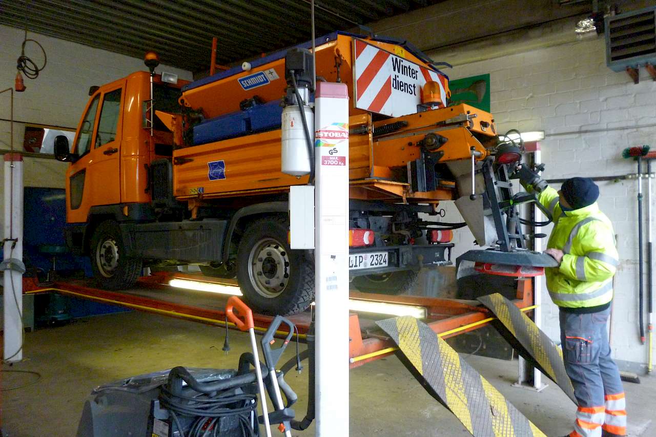 Unsere Rasenmäher, Wildmäher und Laubpuster werden einzeln gecheckt und erforderliche Ausbesserungsarbeiten ausgeführt. Die im Winterdienst eingesetzten Fahrzeuge werden nach ihren Fahrten innen und außen gründlich gereinigt, damit das Salz erst gar keine Möglichkeit findet, sich festzusetzten. Kleinere Reparaturen werden von uns kurzfristig durchgeführt.