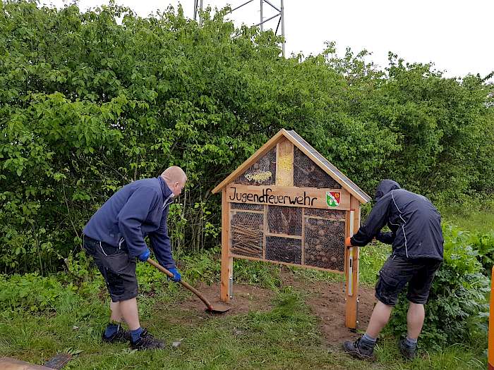 Die engagierte Jugendfeuerwehr Leopoldshöhe hat uns gebeten, sie bei der Teilnahme eines Antrages für einen Umweltpreis zu unterstützen. Ein Insektenhotel sollte Bestandteil dieser Bewerbung sein. Ein klarer Fall für die Tischlerei. Kristopher Gundlach baute ein Hotel, die jungen Feuerwehrleute befüllten die einzelnen Fächer und die Straßenwärter haben es an gut sichtbarer Stelle aufgestellt.