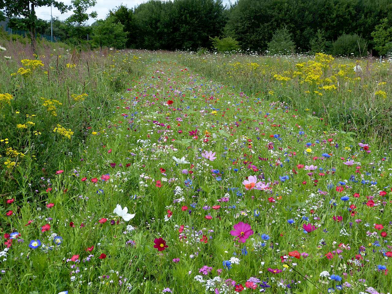 Blühwiesen: Mit diesem Thema beschäftigen wir uns schon seit 2014, nachdem die Politik dieses Thema auf die Tagesordnung gesetzt hat. Mit kleineren Versuchsflächen haben wir begonnen, uns Erfahrungen anzueignen. Unterstützt durch ortsansässige Landwirte, wurden die ausgesuchten Wiesenflächen durchgefräst und mit heimischen Blumenmischungen eingesät. Begonnen haben wir mit einer Mischung mit 70 % Gräseranteil, die sich im Ortskern als nicht praktikabel erwiesen hat. Diese Mischung haben wir jetzt in unserem Gewerbepark auf einer 1.500 m² großen Flächen ausgebracht. Für die acht Ortsteile haben wir dafür eine bunte Bienensommermischung ausgesucht. Die Resonanz der Bürgerinnen und Bürger war daraufhin äußerst positiv und es kommen immer mehr Anfragen, wo man denn diese Farbenpracht bestellen könne. Einmal jährlich treffen wir uns im Rahmen des interkommunalen Erfahrungsaustausches „Blühende Landschaft Lippe“ um auch hier neue und wichtige Informationen in der Weiterentwicklung dieses Projektes zu erhalten.