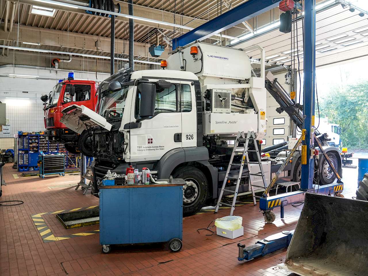 Das Abfallsammel-Fahrzeug gehört den Technischen Betrieben Rheine (TBR). Der Eigenbetrieb der Stadt Rheine ist u.a. für die Abfallentsorgung in der 78.000-Einwohner-Stadt verantwortlich. Neben der Abfallentsorgung kümmert sich das kommunale Unternehmen auch um die Abwasserbeseitigung sowie die Planung, den Bau und die Unterhaltung von Straßen und Grünflächen. Um die umfangreichen Aufgaben erledigen zu können, beschäftigen die Technischen Betriebe Rheine rund 230 Mitarbeitende. Acht der Mitarbeitenden arbeiten in der Werkstatt. Sie sind für die Wartung und Reparatur von 120 zugelassenen Fahrzeugen sowie zahlreichen Kleinmotorgeräten wie Rasenmäher oder Motorsägen verantwortlich. Die Fahrzeuge kommen nicht nur aus der TBR-Flotte. Repariert wird auch für die Stadtwerke Rheine, die Berufsfeuerwehr und die Freiwilligen Feuerwehren der Stadt sowie die Rettungsdienste. Geleitet wird das Werkstattteam des der Kfz.-Innung angeschlossenen Werkstatt von Andreas Sandmann. Der Kfz-Meister arbeitet seit über 20 Jahren für die Technischen Betriebe Rheine.