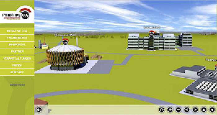 Eine virtuelle 3-D-Welt mit dem Namen "CO2 Earth - virtuelle Infrastruktur für Kommunen und Industrie" stellt die Initiative CO2 jetzt vor. Unter www.initiative-co2.de haben Entscheider aus Kommunen und Industrie die Möglichkeit, über diese 3-D-Animation öffentliche Gebäude oder Industrieanlagen zu besuchen. Dort können sie technische Lösungen zur Einsparung von Energie und Kosten, zur Energieeffizienzsteigerung, zur energetischen Sanierung und für den Einsatz erneuerbarer Energien betrachten.