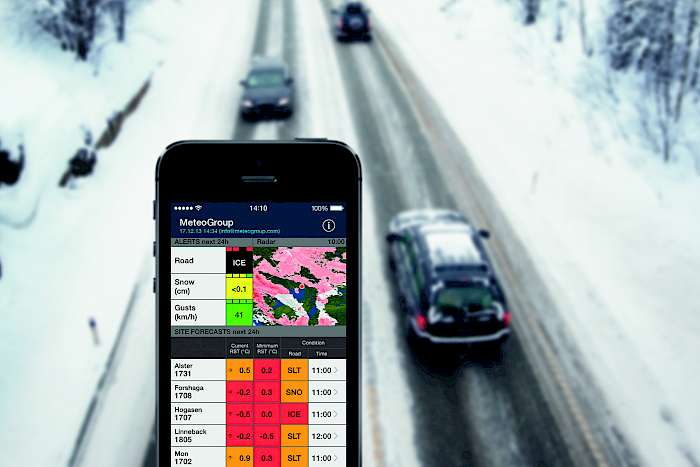MeteoGroup bietet Wetterinformationen, Visualisierungen und sogenannte Decision-Support-Systeme, die wetterabhängige Entscheidung optimal unterstützen sollen. Winterdiensten soll MeteoGroup ortsgenaue Wettervorhersagen, spezifische Glättewarnungen und einen 24-Stunden-Telefon-Service liefern, über den sich Winterdienste bei kritischen Wetterlagen von einem Meteorologen beraten lassen können. Per Thermal- und Skyview-Mapping identifiziert MeteoGroup besonders glätteanfällige Streckenabschnitte im Einsatzgebiet.