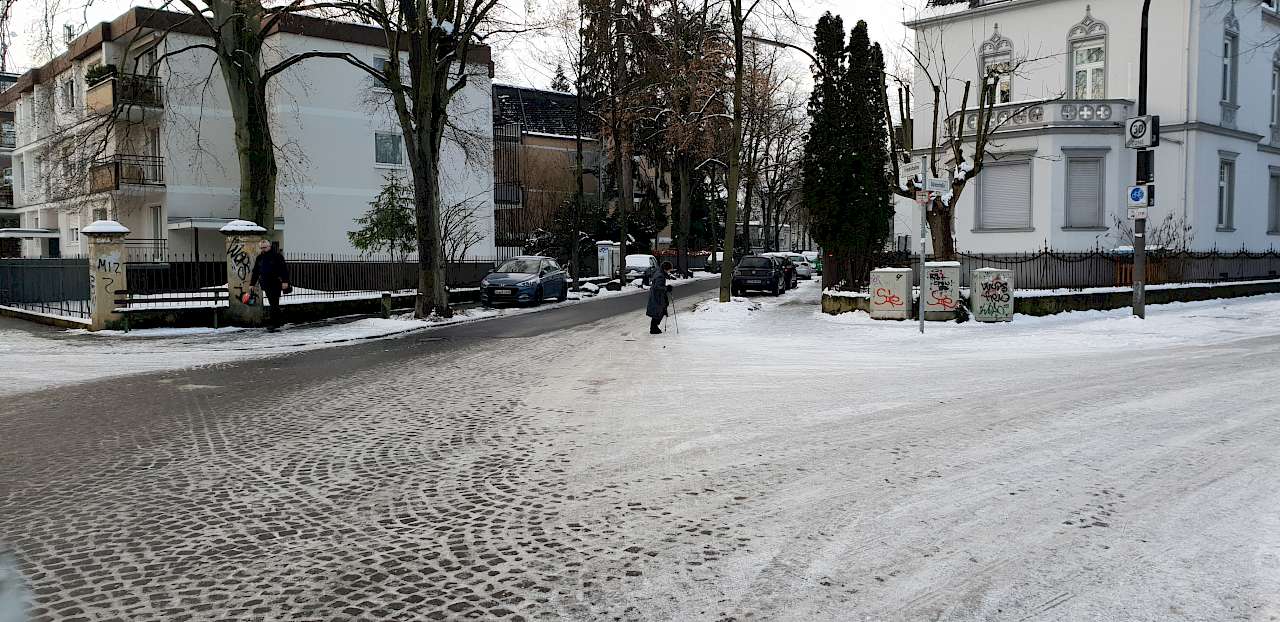 Bei Fußgänger-Überwegen denkt man natürlich sofort in erster Linie an die markierten Überwege wie Zebrastreifen und Fußgängerfurten an Lichtsignalanlagen, die natürlich auch die wichtigsten Querungsbereiche sind und im Winterdienst gesichert werden müssen.