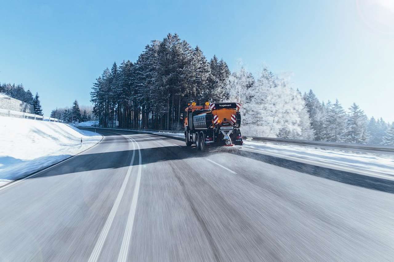 Norbert Stiefler: Dazu nehmen wir einen Standardtraktor mit 100 PS und Kugelmann-Streuer für 1,8 t Salz. Das schafft.