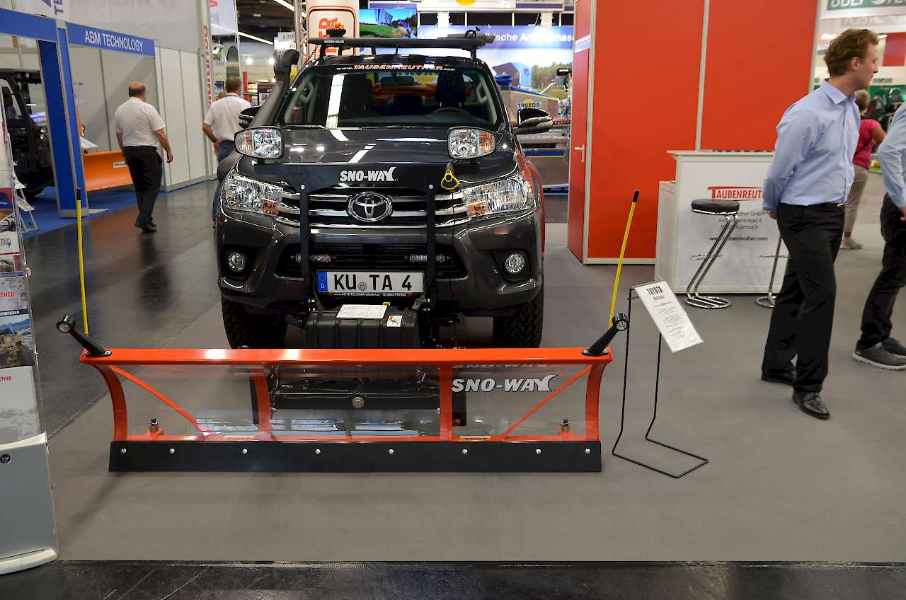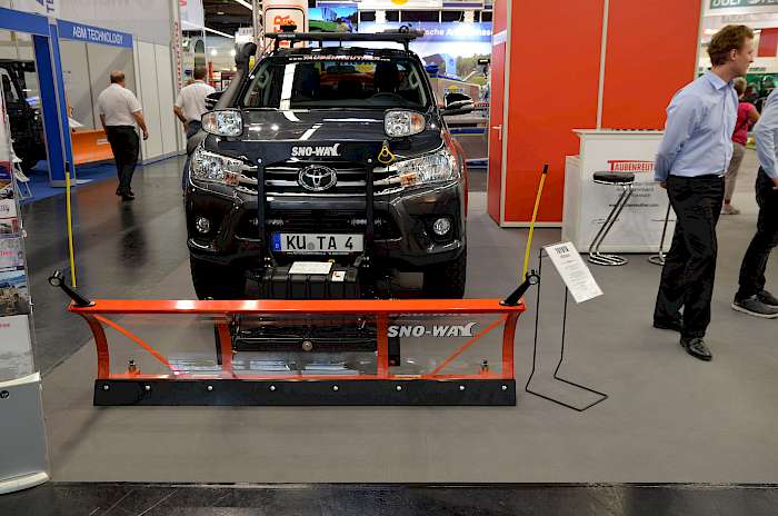 Auf der Ladefläche wird mittels Zurrgurten ein Streuer angebracht. Die Streuer sind in verschiedenen Ausführungen und variablen Maßen, wahlweise mit serienmäßiger GPS-Unterstützung, geschwindigkeitsabhängiger Mengenregulierung und Steuertechnik mit Touch-Bedienung erhältlich. Die Ausbringmenge kann bequem über ein separates Bedienteil vom Fahrersitz aus stufenlos eingestellt werden. Diese sind geeignet zur optimalen Verteilung von Streugütern, wie z. B. Salz, Granulat, Sandgemisch und Splitt. Die Schneeschilder zeichnen sich laut Hersteller durch eine extreme Festigkeit bei geringem Eigengewicht aus. Lexan ist ein Polycarbonat und gleicht mit seiner hohen optischen Klarheit auf den ersten Blick Acrylglas. Die bemerkenswerten Eigenschaften von Lexan kommen auch in anderen Bereichen zum Tragen. Der Pflug ist fahrzeugspezifisch und versteht sich inklusive Beleuchtungsträger, Beleuchtung und Kabelbaum. Seitlich am Schild befinden sich standardmäßig Markierungsstäbe. Eine hydraulische Arretierung des Schneepflugs ermöglicht effizienteres Räumen. Der Schneepflug wird über eine Joysticksteuerung vom Fahrersitz aus bedient. Gegenüber Schneeschildern aus Stahl sind die Lexan-Schneeschilder besser vor Korrosion geschützt und um bis zu 25 % leichter.
