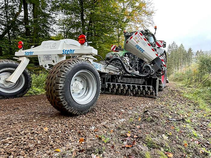 Das hat bei der Kundengruppe Kommunen offensichtlich „positiv verstärkend“ gewirkt, so Christopher Pape, denn neben Wege-Interessengemeinschaften, Forstverbänden und Jagdgenossenschaften gehören mittlerweile auch kommunale Auftraggeber im Umkreis von etwa 50 km zum Kundenstamm. „Wobei natürlich auch Städte und Gemeinden Forstwege zu betreuen haben. Doch bei diesen Auftraggebern geht es, was uns betrifft, in erster Linie um landwirtschaftliche Wirtschafts- und um Wanderwege.“