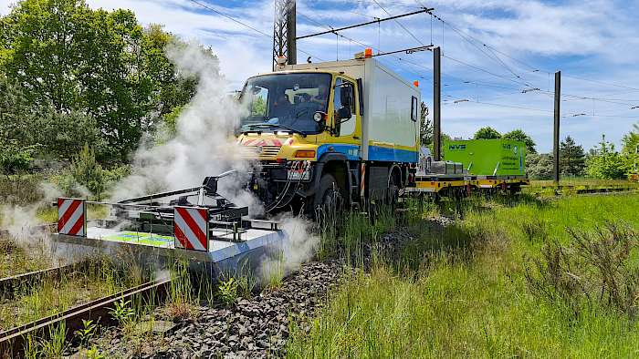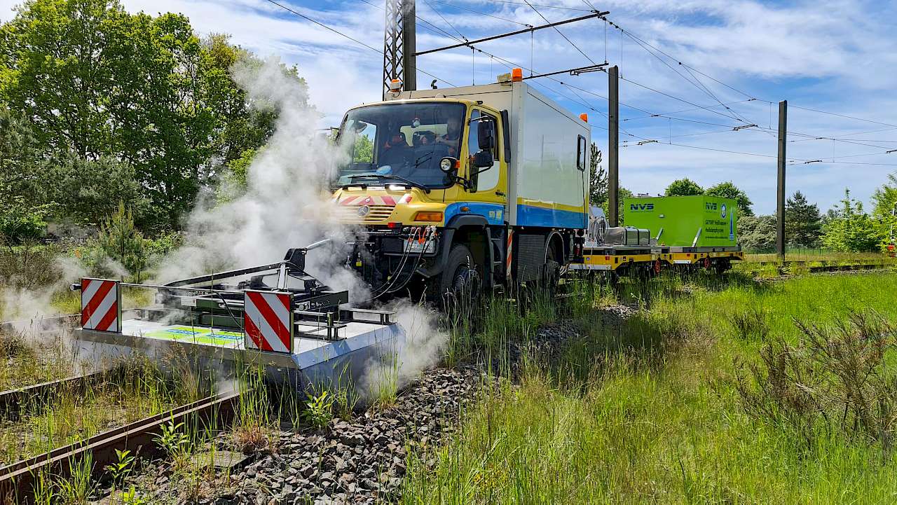Nicht ganz einfach sei die Suche nach einem Hersteller von Heißwasser-/Heißdampfgerätetechnik, die die Technik auf Schienen bringen kann bzw. möchte gewesen. Mit den Firmen „Geysir“ und „Gawronski Dienstleistungen“ konnten schlussendlich aber Partner für eine Realisierung des angedachten „Wildkrautbekämpfungszuges“ gefunden werden. Sie haben das Geysir-Gerätesystem zur Wildkrautbekämpfung in Gleisbettanlagen der Straßenbahn entwickelt und gebaut. Im Mai 2021 ging der Prototyp erstmals in Schwerin in den Praxiseinsatz und war bis September immer wieder auf den Gleisen. „Die ersten Einsätze haben unsere Erwartungen bestätigt“, so Lothar Matzkeit.
